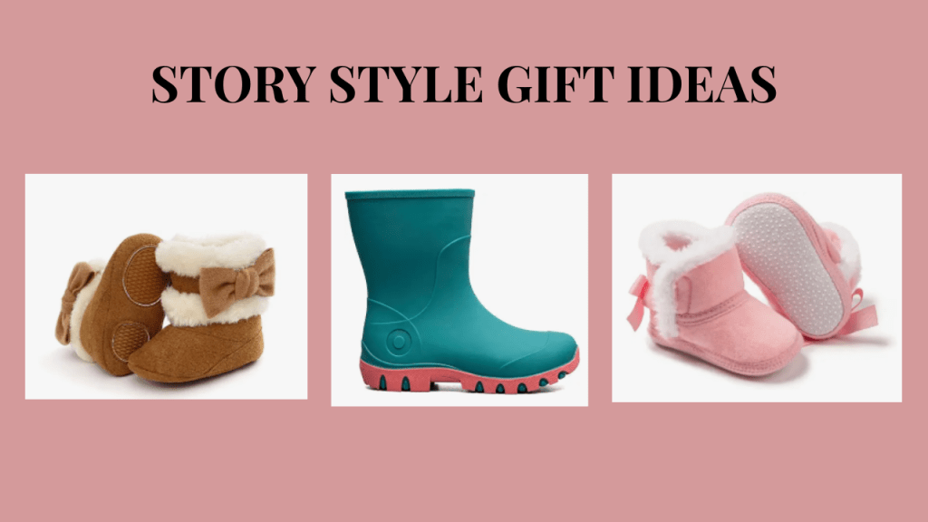 Story Style Gift Idea: Pair “IN CAHOOTS WITH MY BOOTS” book with cute boots (not an affiliate).